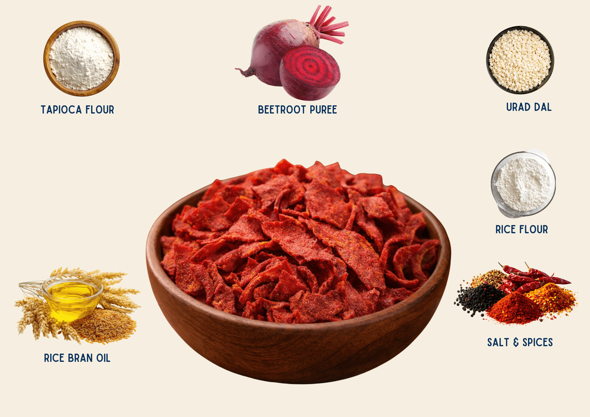 Crafted using real beetroot and cooked in rice bran oil, these chips deliver natural color, earthy sweetness and satisfying crunch. Rice bran oil’s high smoke point ensures stable cooking, helping retain flavor while avoiding heavy, greasy finishes. No artificial coloring - just real vegetable goodness and thoughtfully chosen oil. vibrant, clean alternative to synthetic snacks.