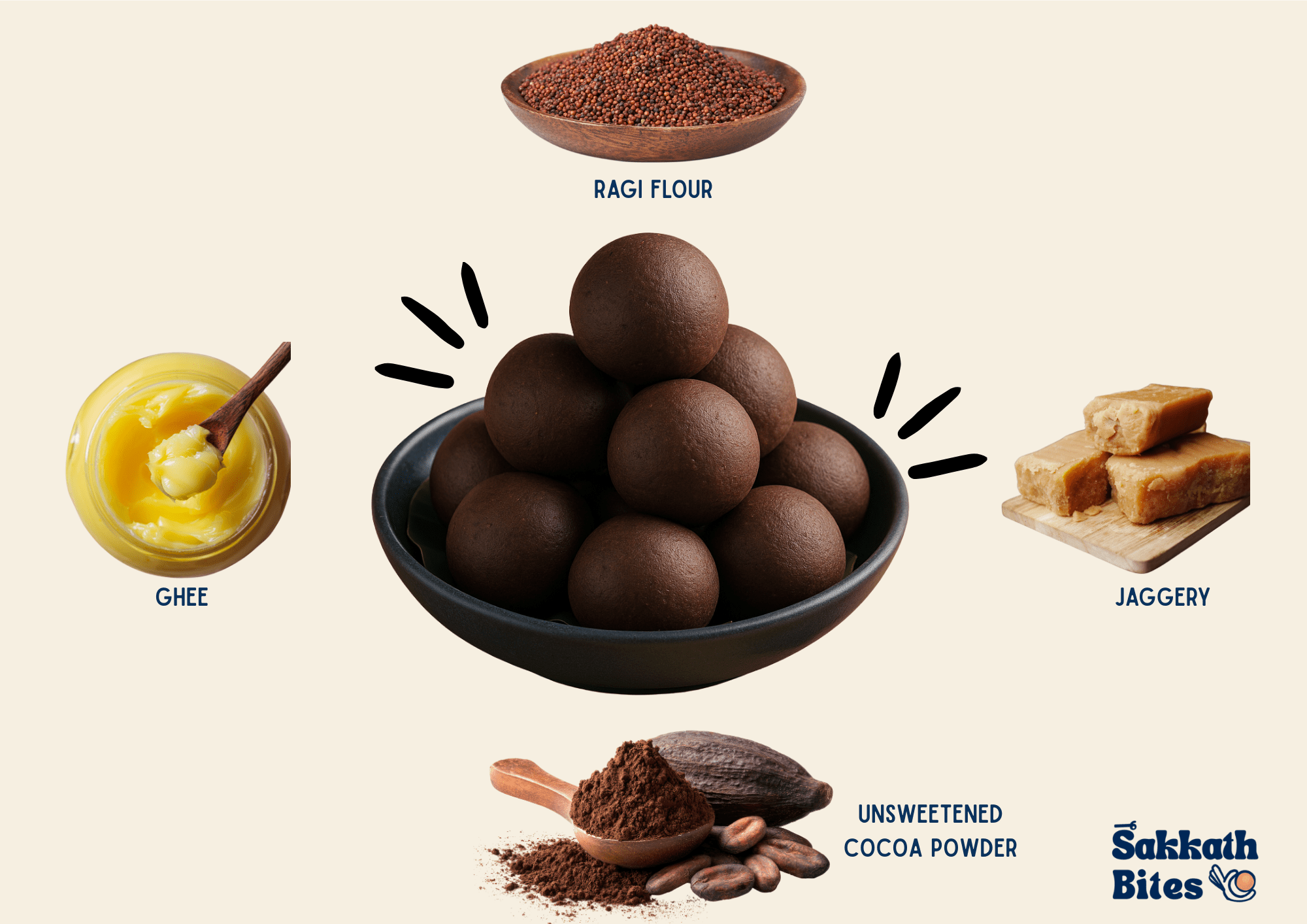 Crafted using calcium-rich Ragi and real cocoa, blended with jaggery and pure ghee, this laddu is designed for growing kids who love chocolate -without refined sugar. Made in small batches without maida or artificial flavors  just real ingredients your child’s body understands. A smarter sweet for happy growth.